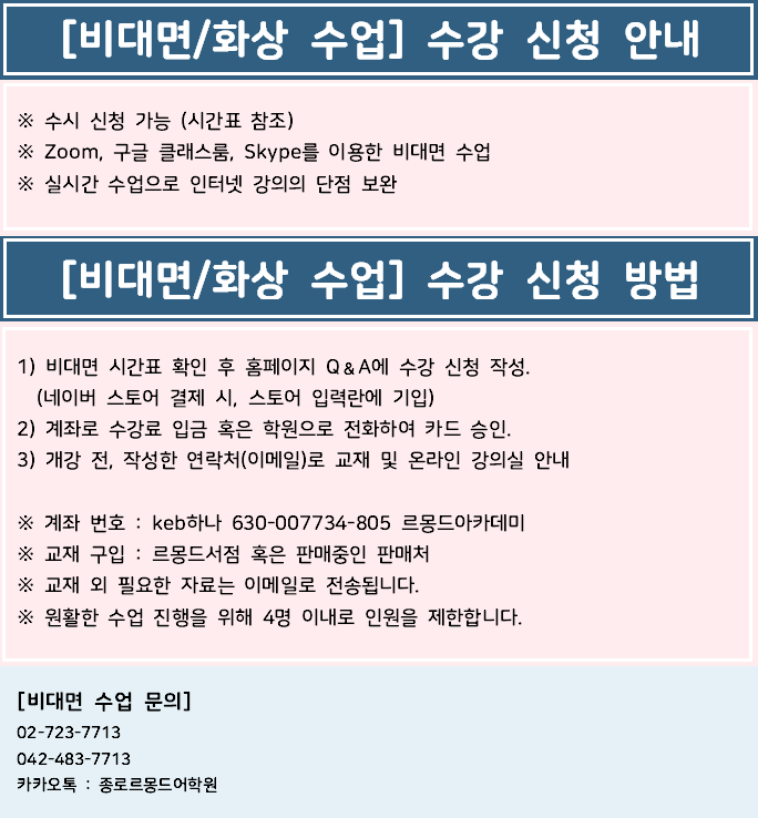 ※ 스마트 스토어에서 비대면 수업 결제 시, 대면 수업으로 변경이 불가능할 수 있습니다.